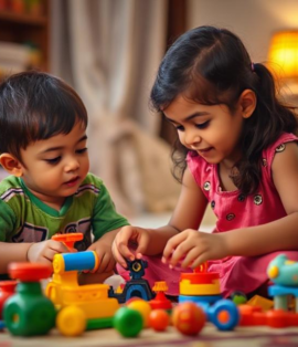 Children can express themselves and develop their narrative abilities with the aid of toys such as dolls, action figures, art and craft sets, and pretend play kits.